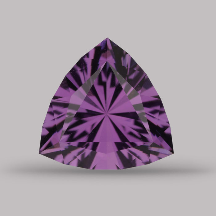 Бразильский аметист среднего цвета в клиньевой огранке триллион. Отличный контраст для кварца и редкая для нашего ассортимента форма.