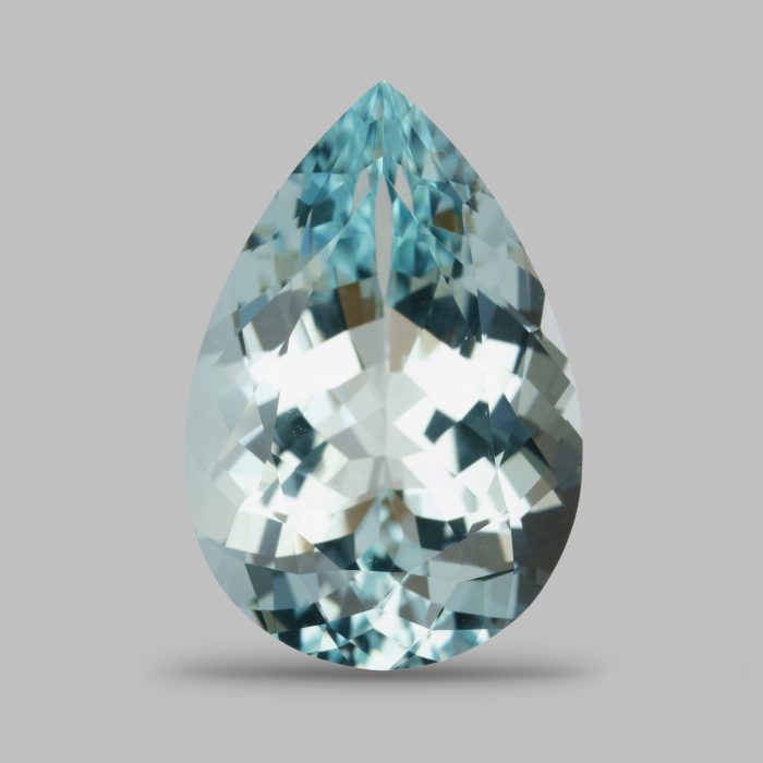 Зеленовато-голубой аквамарин в традиционной огранке. Мы переполировали камень для лучшего блеска и симметрии, но рисунок оставили – он хорошо подходит для светлых камней.