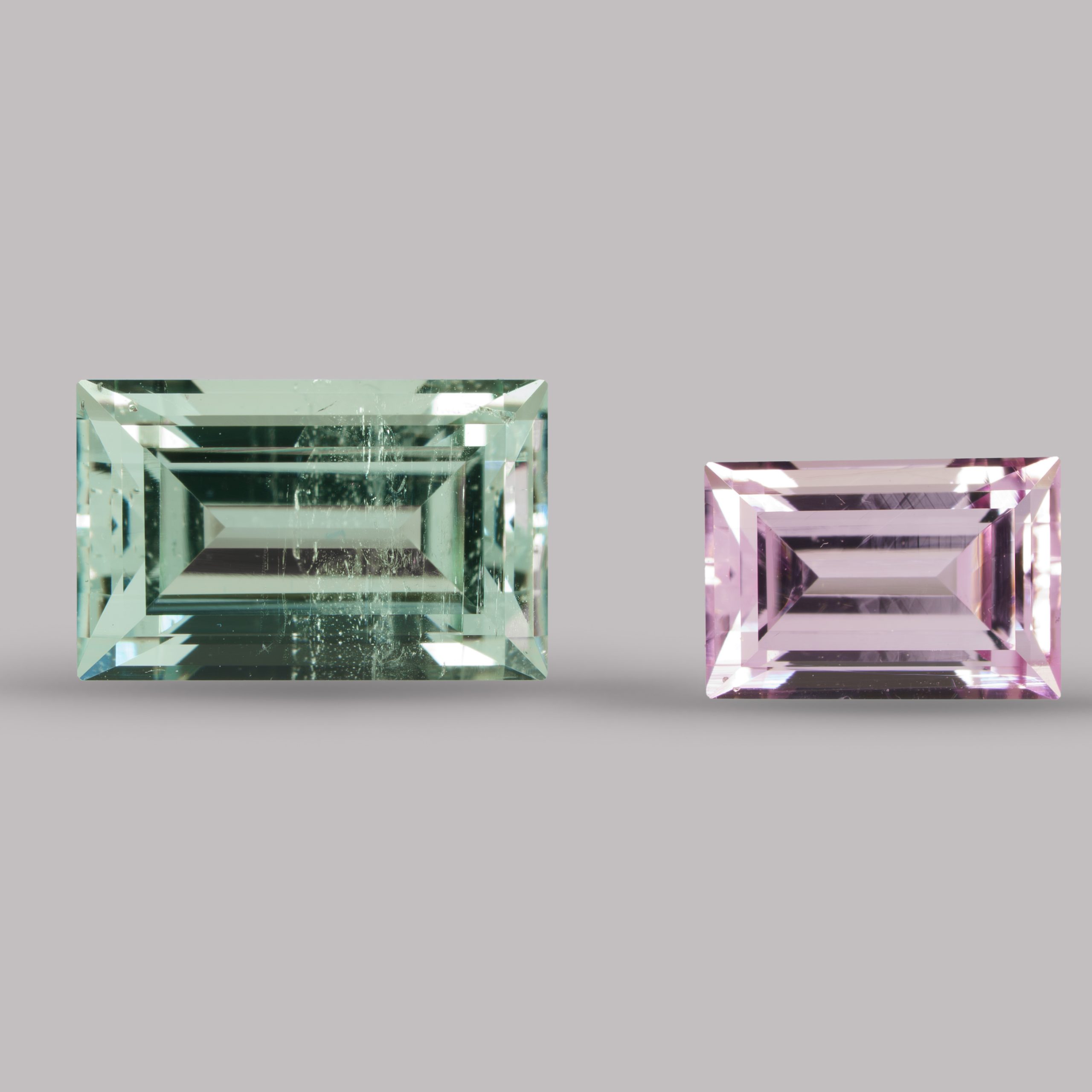 Набор камней из редких российских месторождений на двойное кольцо. Малханский турмалин 1.15кт, 7.5х5.1х3.7мм, шерловогорский зелёный берилл 2.17 кт, 9.9х6.3х5.1 мм