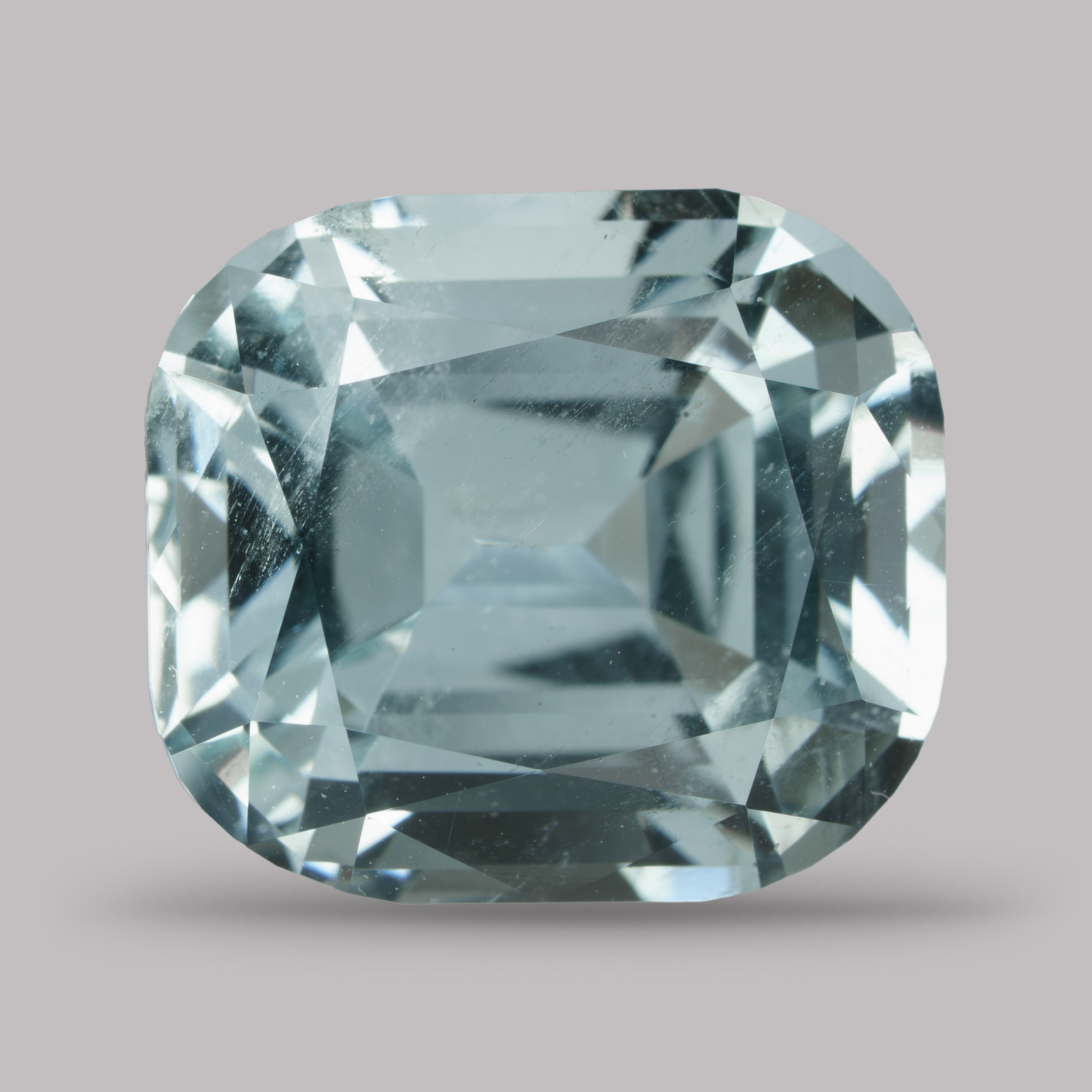 Достаточно крупный светло-голубой аквамарин, огранённый из нигерийского сырья. Мелкие включения на фото глазом не видны.