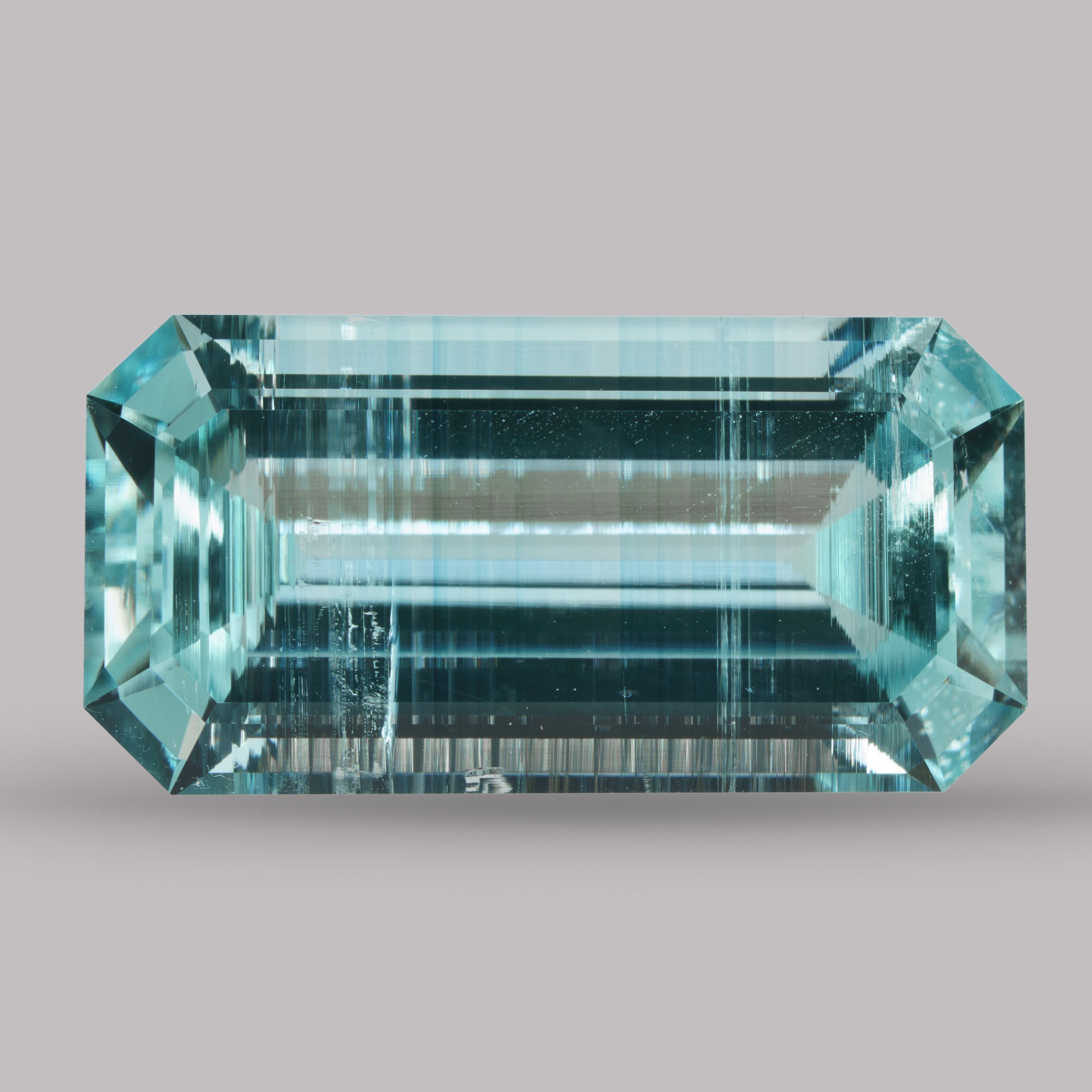 Забайкальский аквамарин с приятным сочетанием размера, яркого цвета и довольно хорошей чистоты. Большинство вертикальных полос – не включения, а ростовая зональность, характерная для природных бериллов.