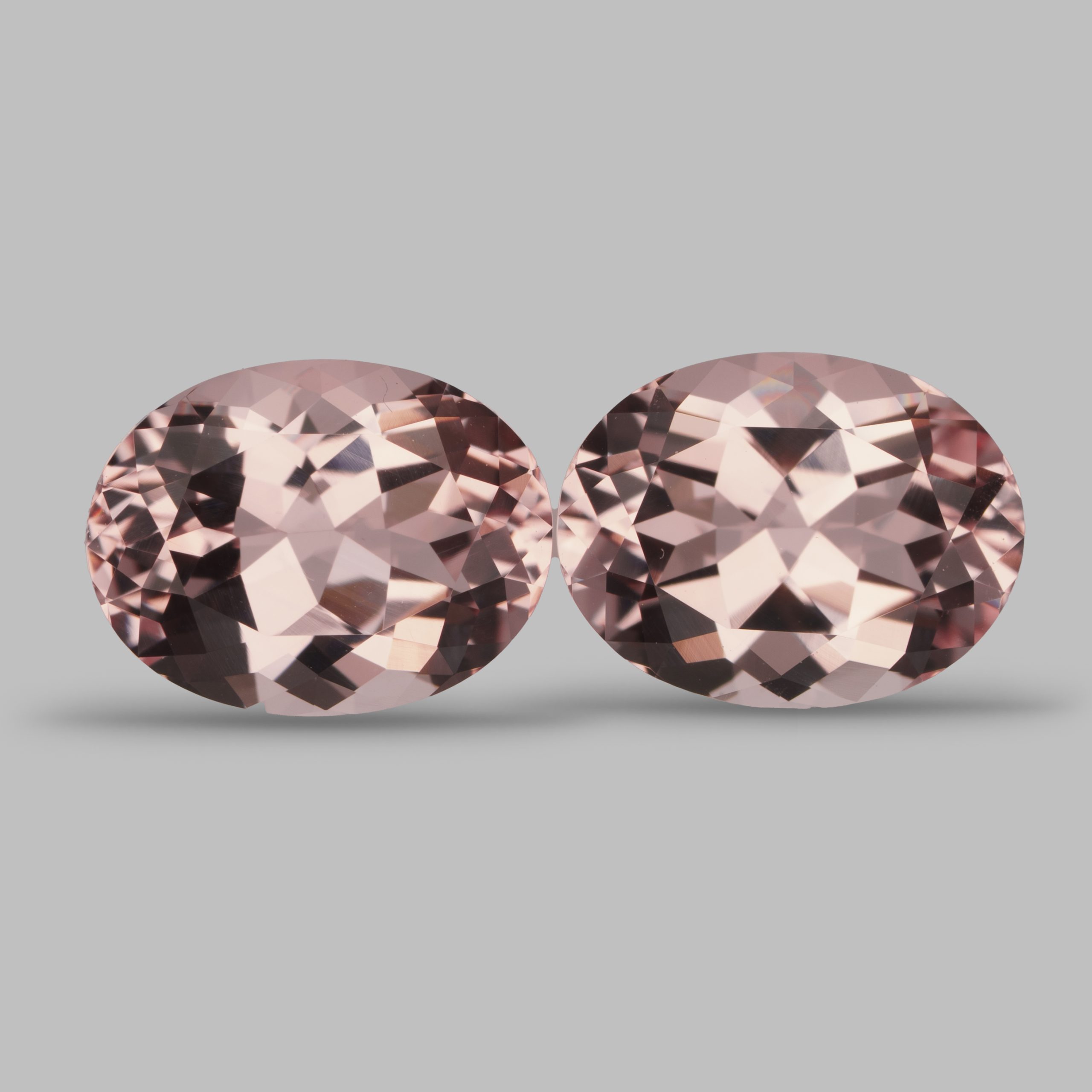 Пара ярких морганитов с тёплым оттенком – редкая насыщенность для такого размера.