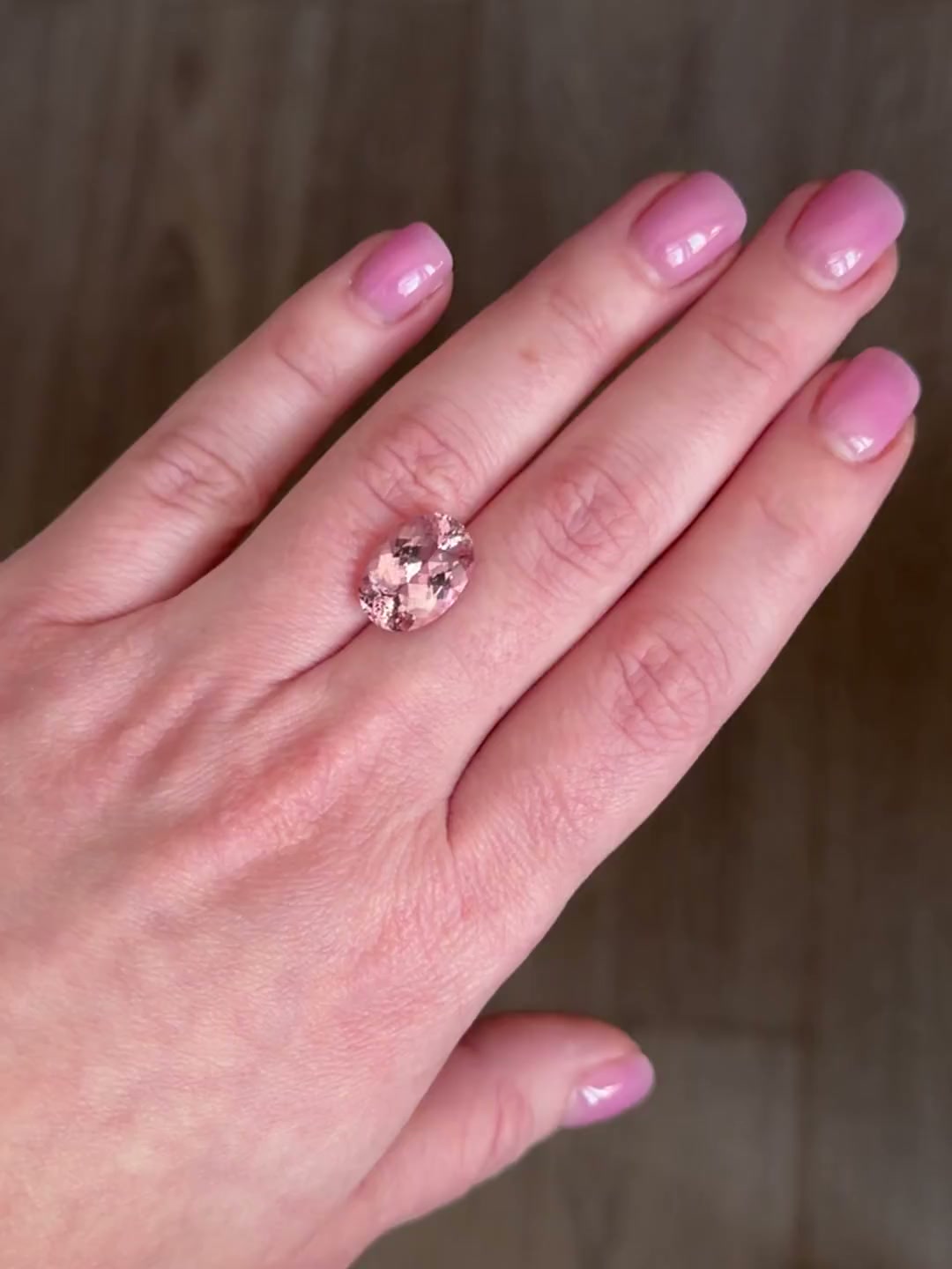 Крупный и яркий камень, морганит, каким мы его хотим видеть, а не обычная бледно-розовая разновидность.