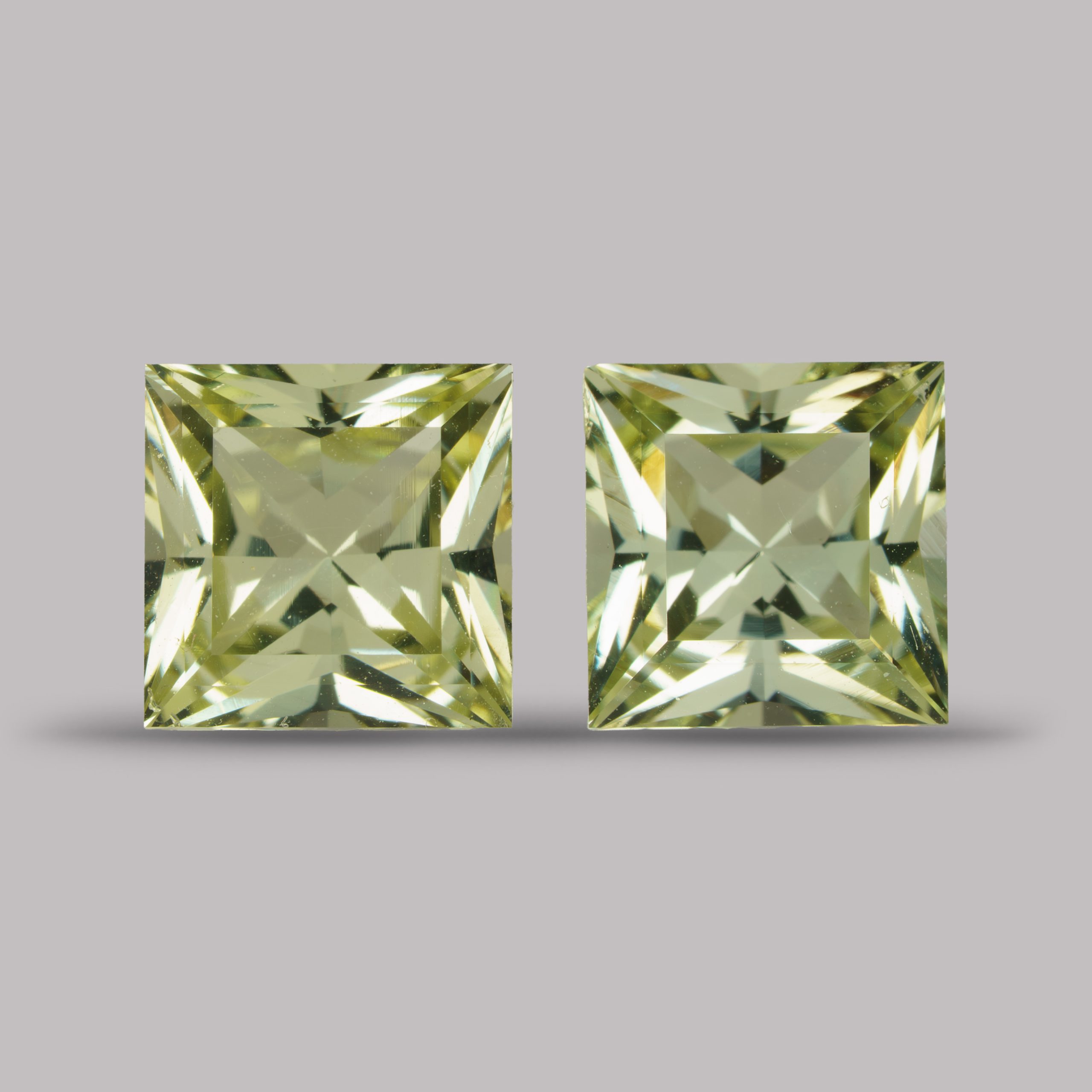 Пара лимонных гелиодоров в огранке принцесса. Отличная чистота.