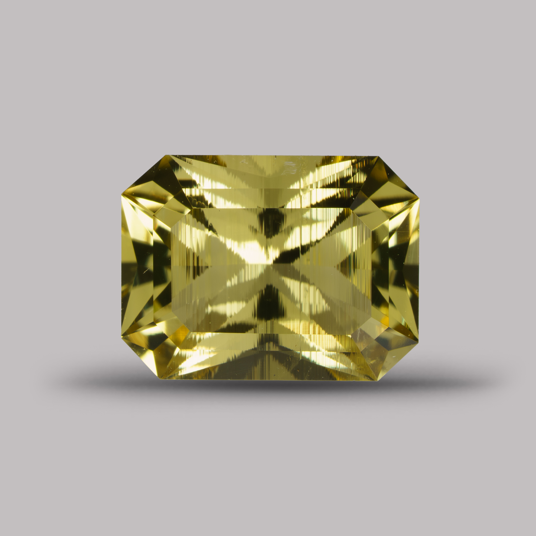 Гелиодор в правильной огранке и с отличной для месторождения чистотой. Вертикальные полосы – не включения, а ростовая зональность.