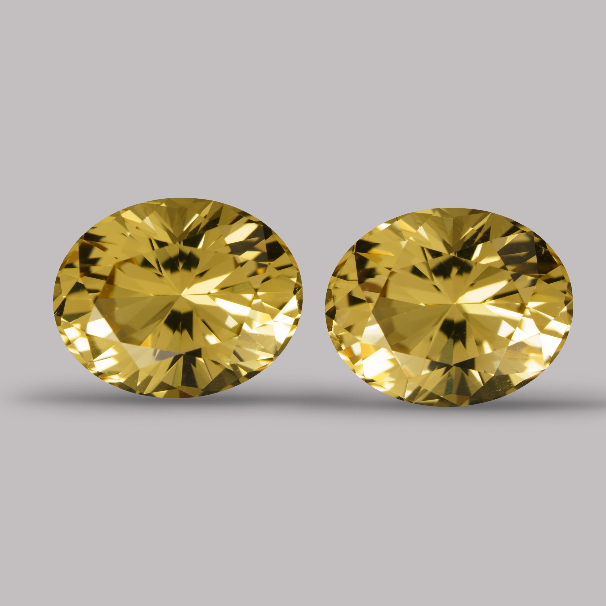 Пара золотистых бериллов с отличной чистотой в бриллиантовой огранке