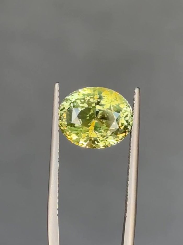 Хризоберилл – минерал особенный, элита драгоценных камней. Два самых известных его вида: гордость Урала – крайне редкий александрит, меняющий цвет в тёплом и холодном освещении, и цимофан, по поверхности которого бегает блик-полоска, напоминающая кошачий глаз. Особенности оптики настолько характерные и запоминающиеся, что эффекты назвали в честь этих камней, но встречаются они и у других минералов: «александритовым» могут похвастаться некоторые гранаты, сапфиры и султаниты – чем сильнее реверс, тем дороже камень, а эффект «кошачьего глаза» можно наблюдать у турмалинов, аквамаринов и топазов. Твёрдость хризоберилла выдающаяся – 8.5 по шкале Мооса, это один из самых долговечных цветных камней. Фактически, по этому параметру он незначительно уступает только корунду (рубину и сапфиру). У хризобериллов высокий коэффициент преломления – отсюда живая и яркая игра света в прозрачных образцах с хорошей огранкой. Другие хризобериллы могут быть не менее интересными и ценными. В отличие от рокового очарования александрита, лучшие образцы привлекают насыщенными жёлто-зелёными цветами.