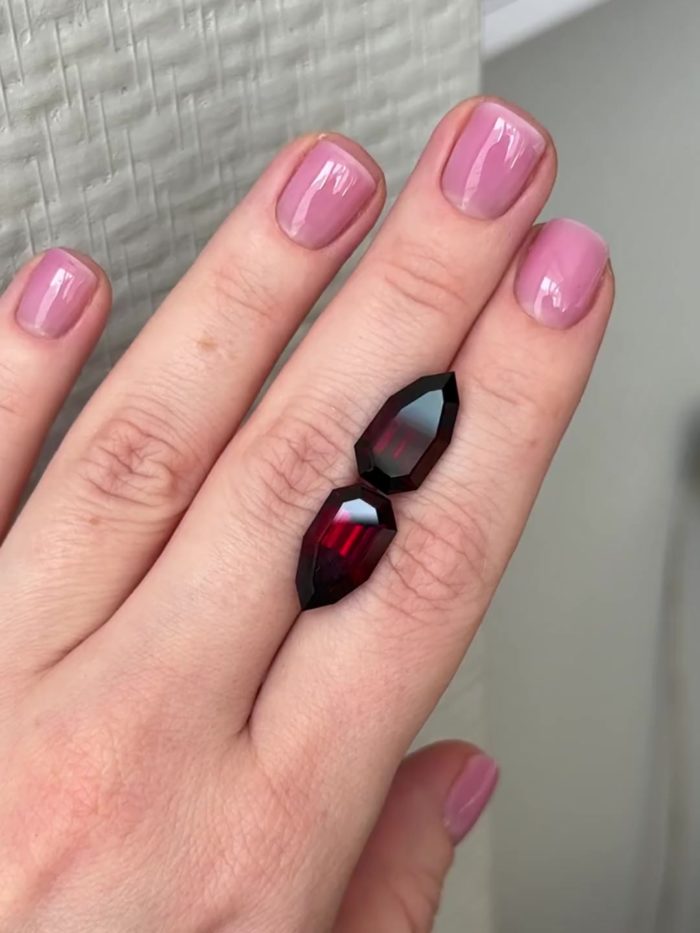 Пара гранатов необычной огранки, которая очень идёт их глубокому цвету