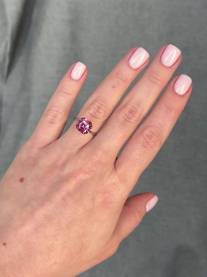 Редкий светло-розовый гранат Малайя в солидном для этой разновидности весе. Есть крошечное включение, видимое с площадки, зато огранка – правильный ашер.
