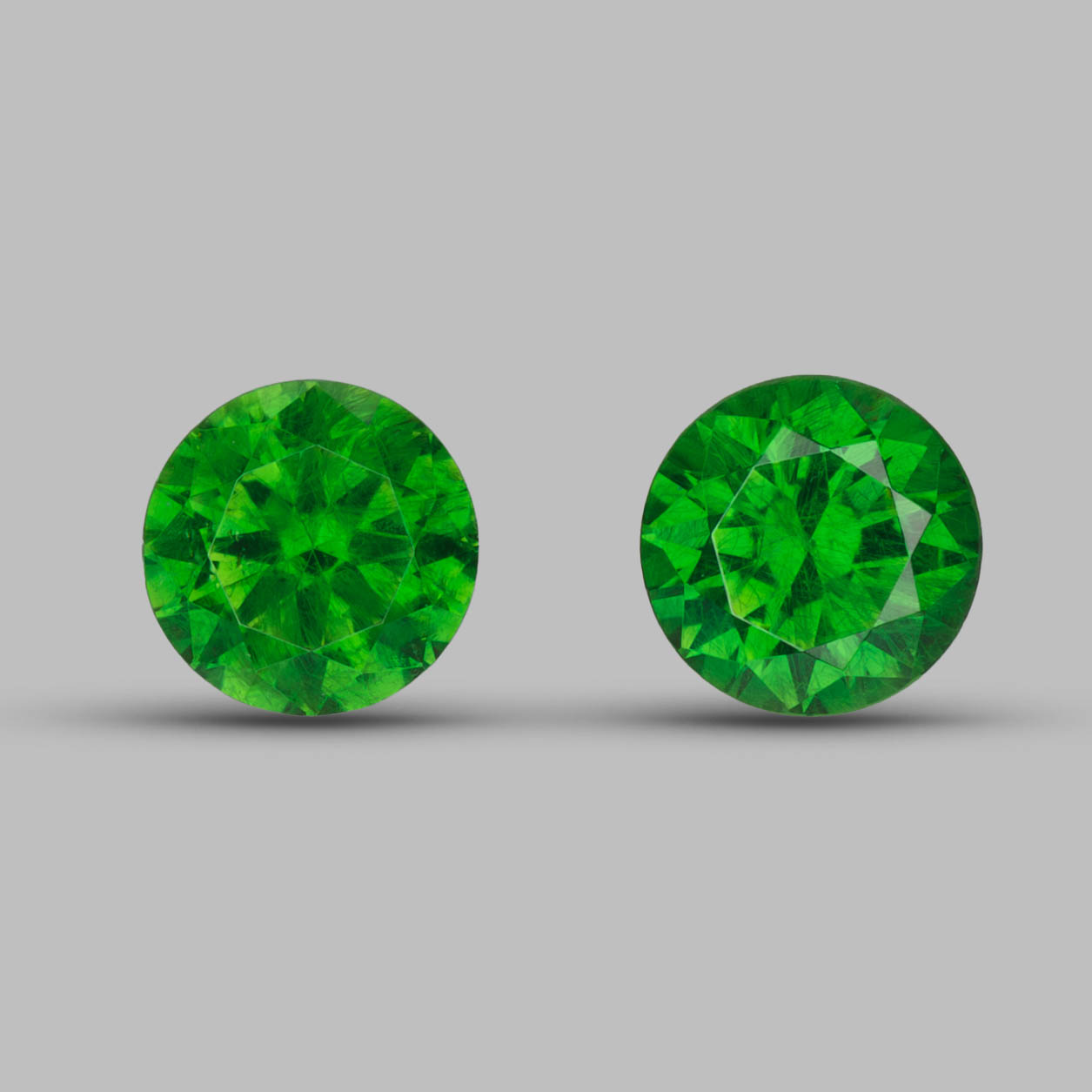 Пара уральских зелёных гранатов выдающегося цвета (2 по российской классификации) для ярких пусет