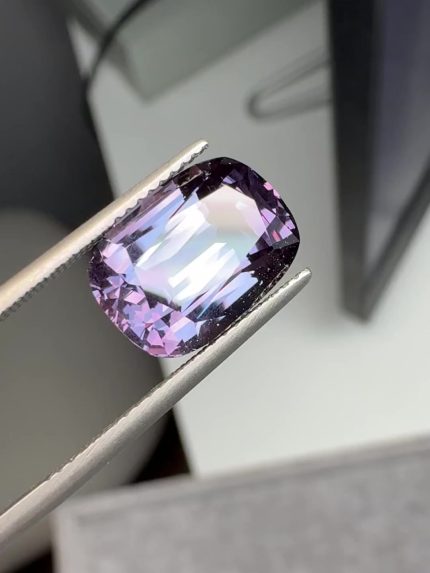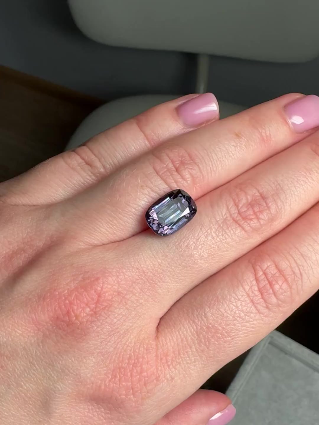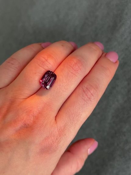 Танзанийский гранат с александритовым эффектом выдающейся чистоты и размера. В дневном свете – голубовато-серый, зеленовато-серый, в тёплом электрическом – пурпурный. Наша точная огранка и качественная полировка.