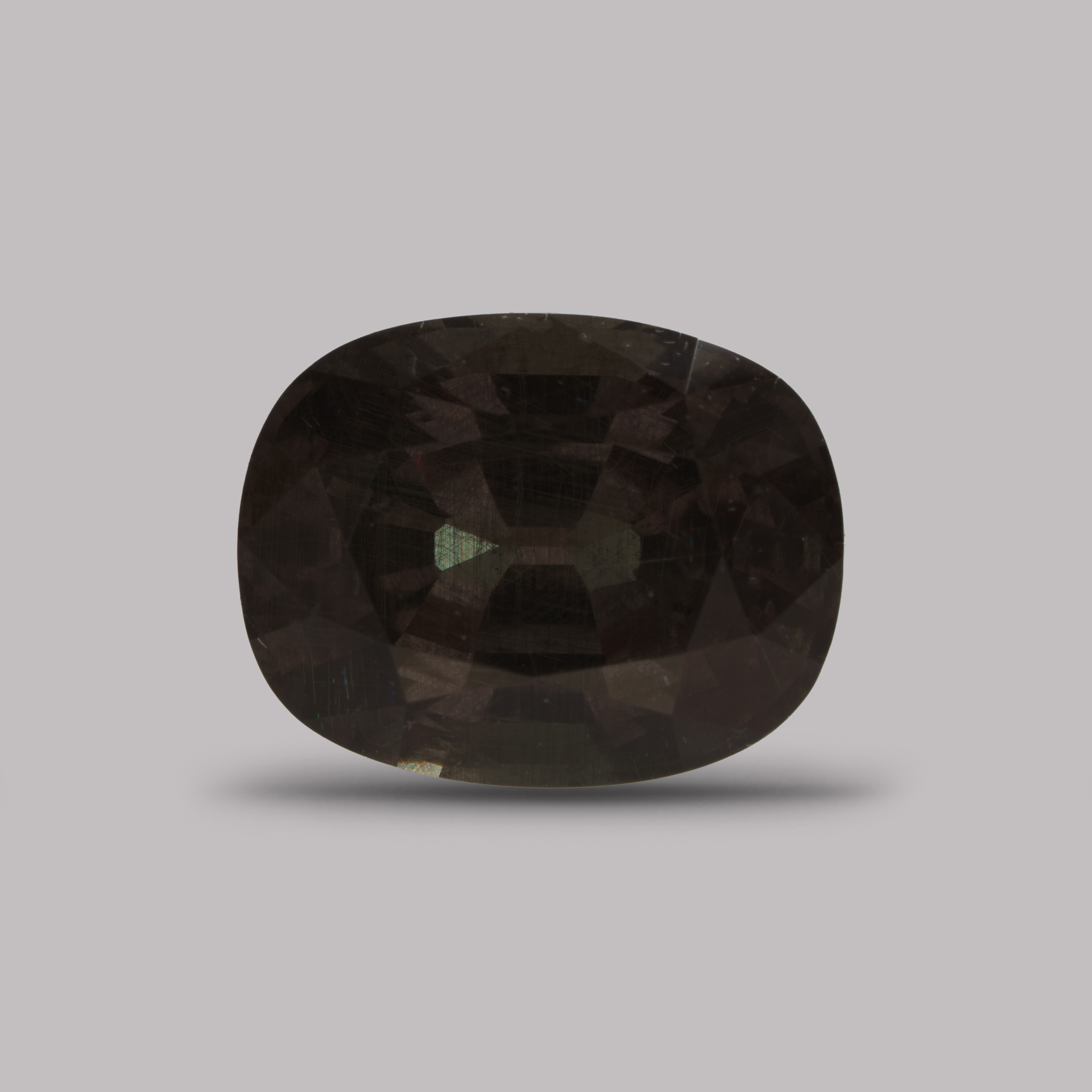 Тёмный зелёно-коричневый камень, при свечах или лампе накаливания приобретающий пурпурный оттенок