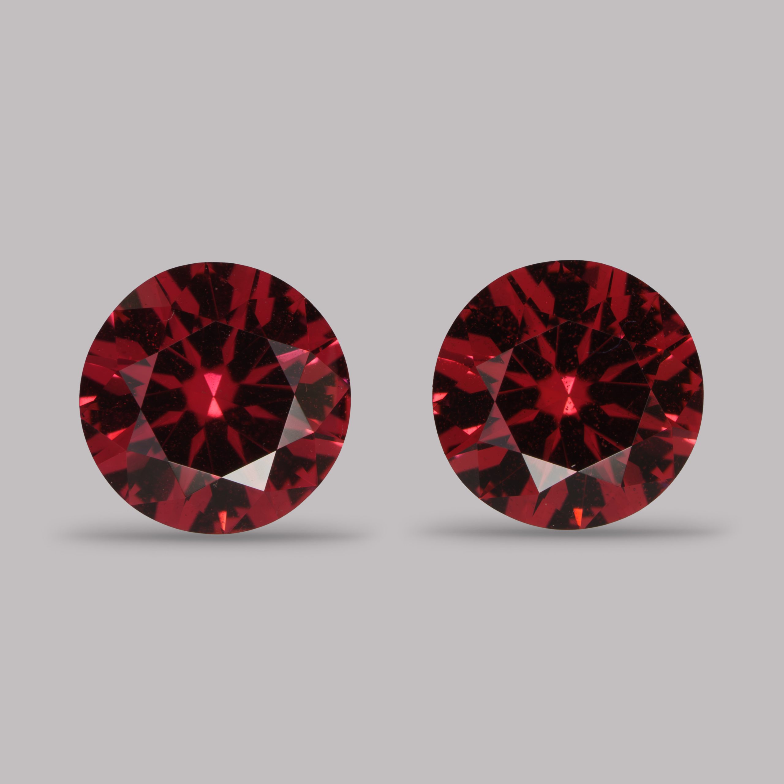 Эту пару мы огранили из старых запасов мадагаскарского сырья. Открытый цвет без коричневого подтона – редкость для гранатов.