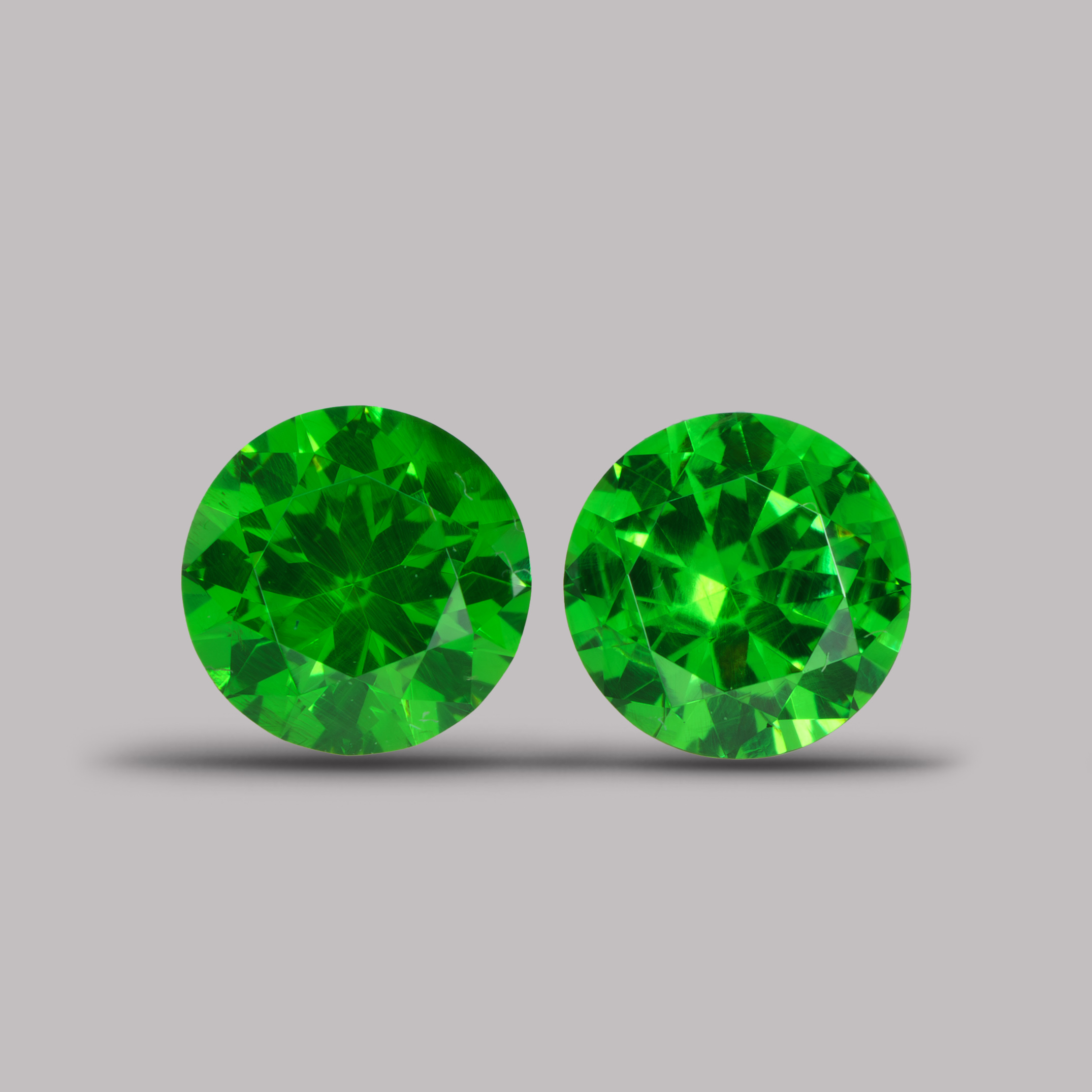 Пара ярких уральских гранатов, что встречаются реже бриллианта. Отличная визуальная чистота и живой цвет.