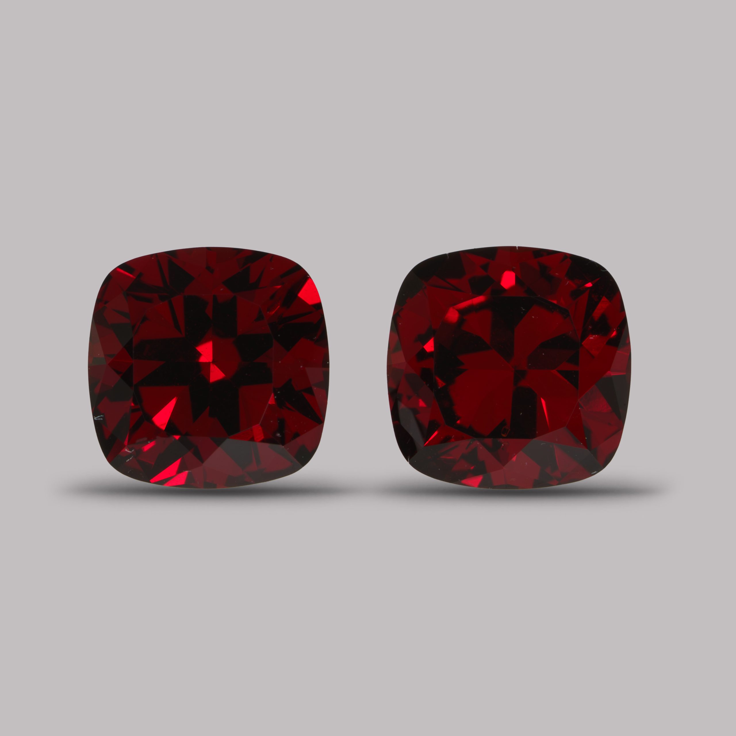 Пара глубоких красных гранатов в бриллиантовой огранке
