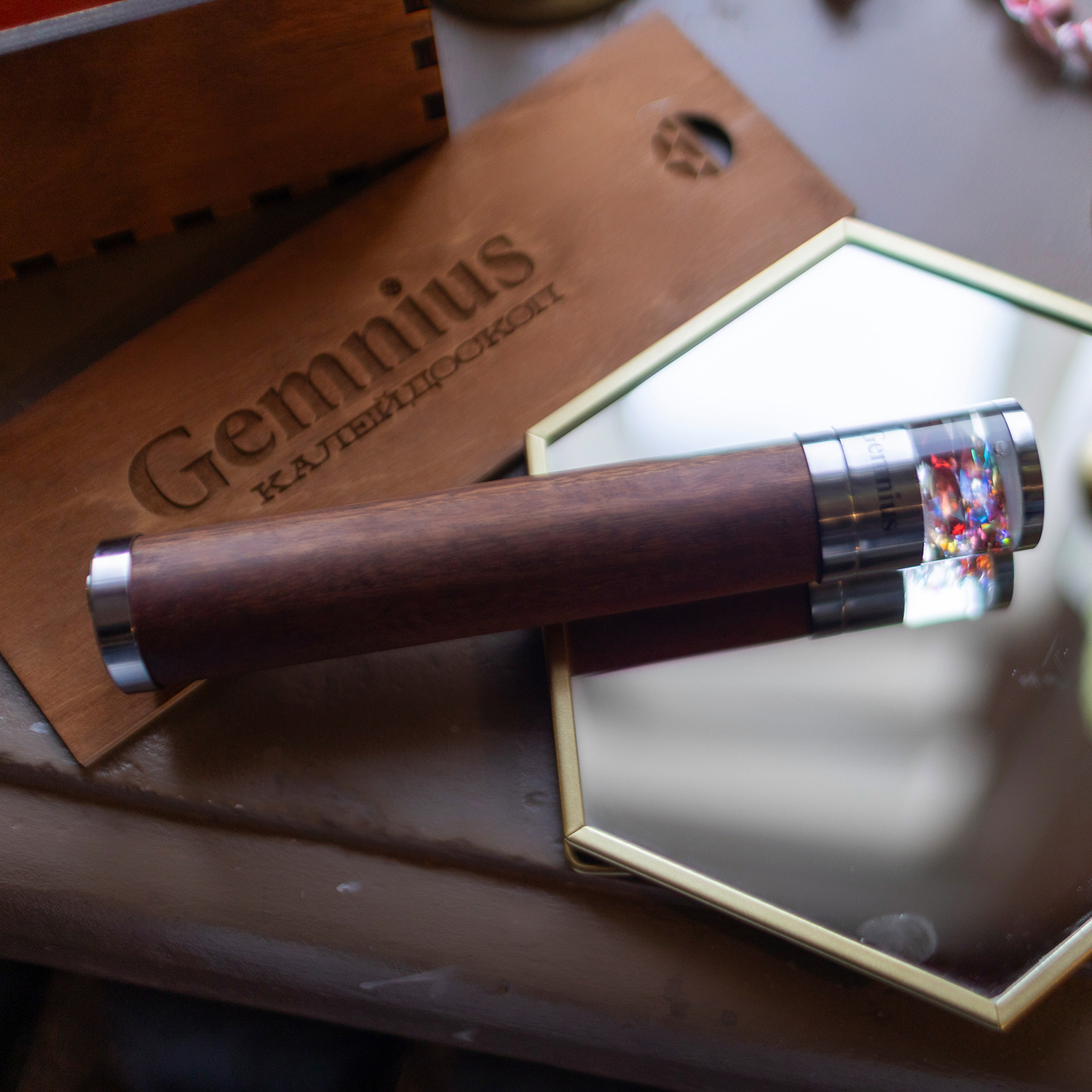 Глядя в объектив, в первые минуты сложно что-то сказать, кроме «вот это да!». Проверено. Чистый восторг от созерцания чуда – как в детстве. Кому дарить? Себе, внутреннему ребёнку, бизнес-партнёру, тому, у кого всё есть, – и самолёт, и баскетбольная команда, и даже одна из топовых видеопродакшн-студий. Калейдоскоп с природными камнями – квинтэссеция ценностей Gemnius. Соединение знаний, глубокого понимания камня, мастерства и билет в сказку.
