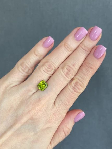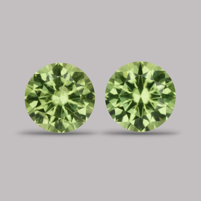 Редкие танзанийские хризолиты в бриллиантовой огранке, от большинства камней на рынке отличаются более мятным оттенком без желтизны.