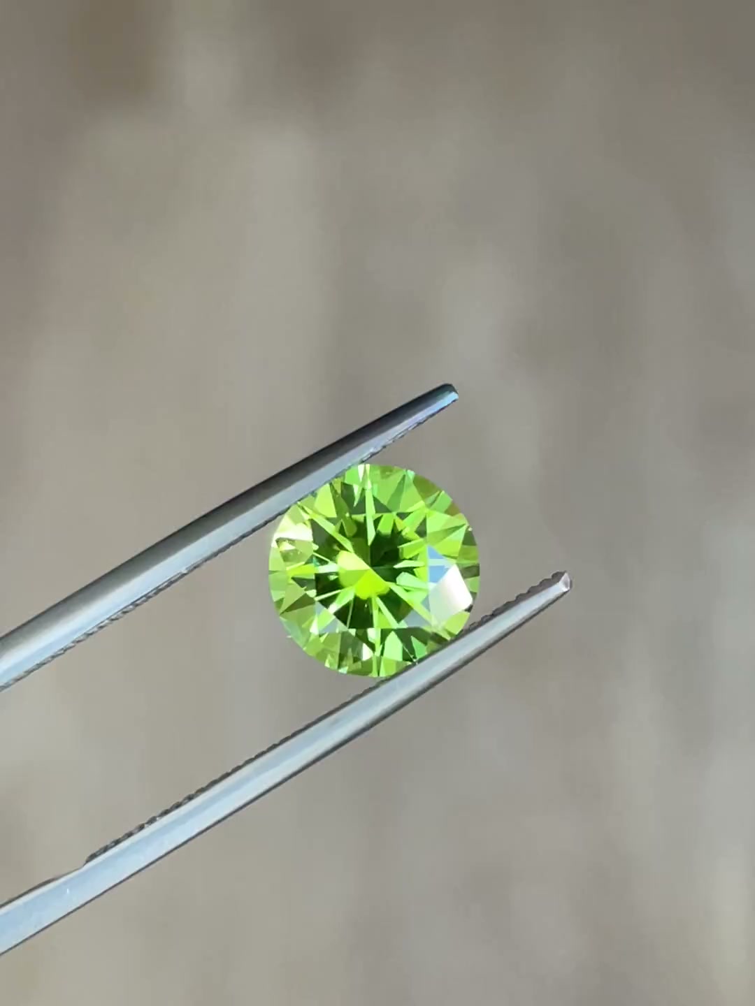 Яркий пакистанский перидот с хорошей чистотой в бриллиантовой огранке.