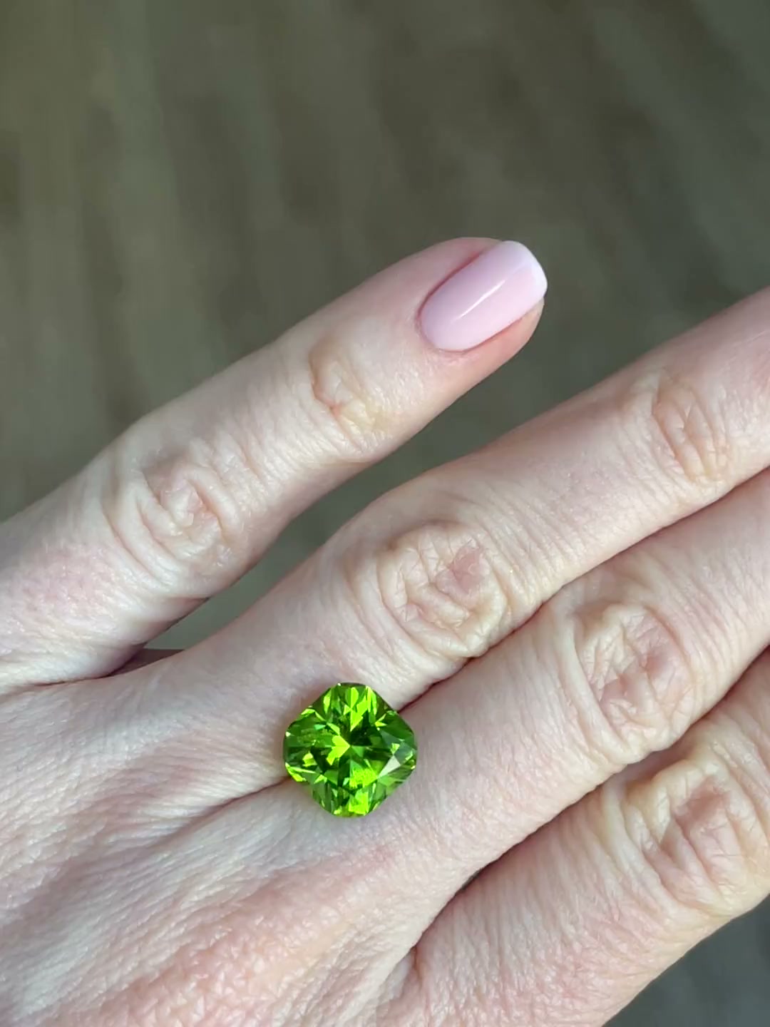 Крупный и чистый хризолит в бриллиантовой огранке. Искрится на солнце!