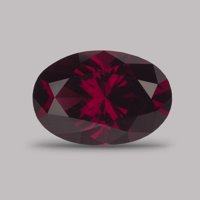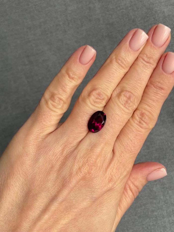 Крупный африканский тёмно-малиновый гранат родолит с незначительными включениями рутила, создающими эффект “шёлка”