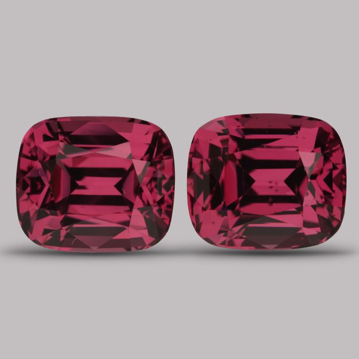 Пара ярких танзанийских родолитов (долина Умба) в правильной огранке.