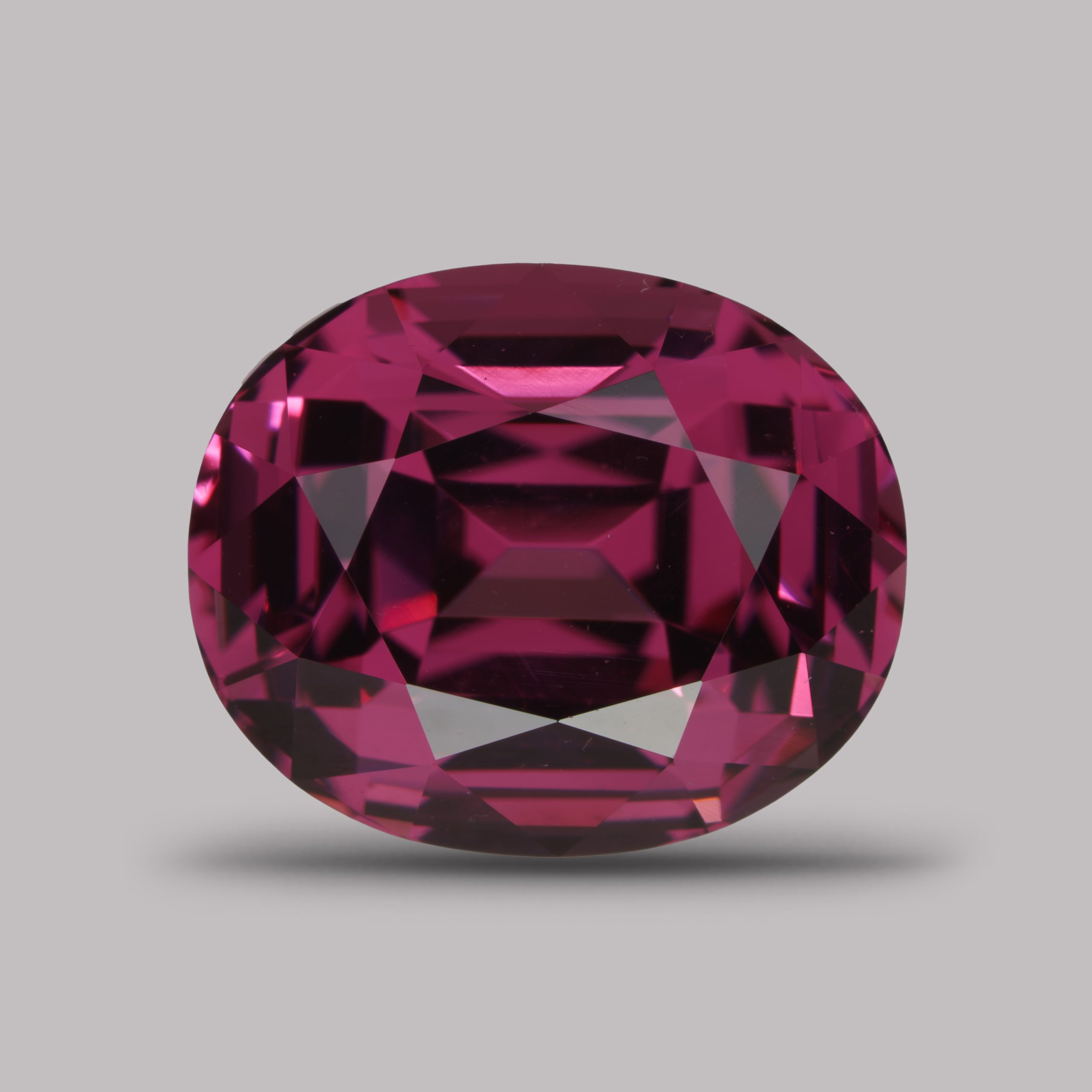 Просто очень качественный танзанийский гранат родолит. Яркий, чистый, правильно огранённый. Рисунок огранки традиционный, качество исполнения – по нашим стандартам.