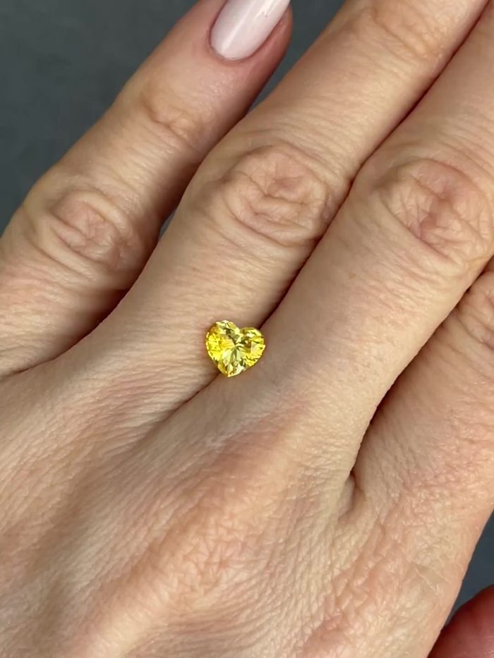 Яркий жёлтый сапфир в качественной огранке, что для этой формы большая редкость. Из облагораживания – только низкотемпературный нагрев