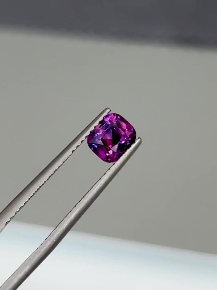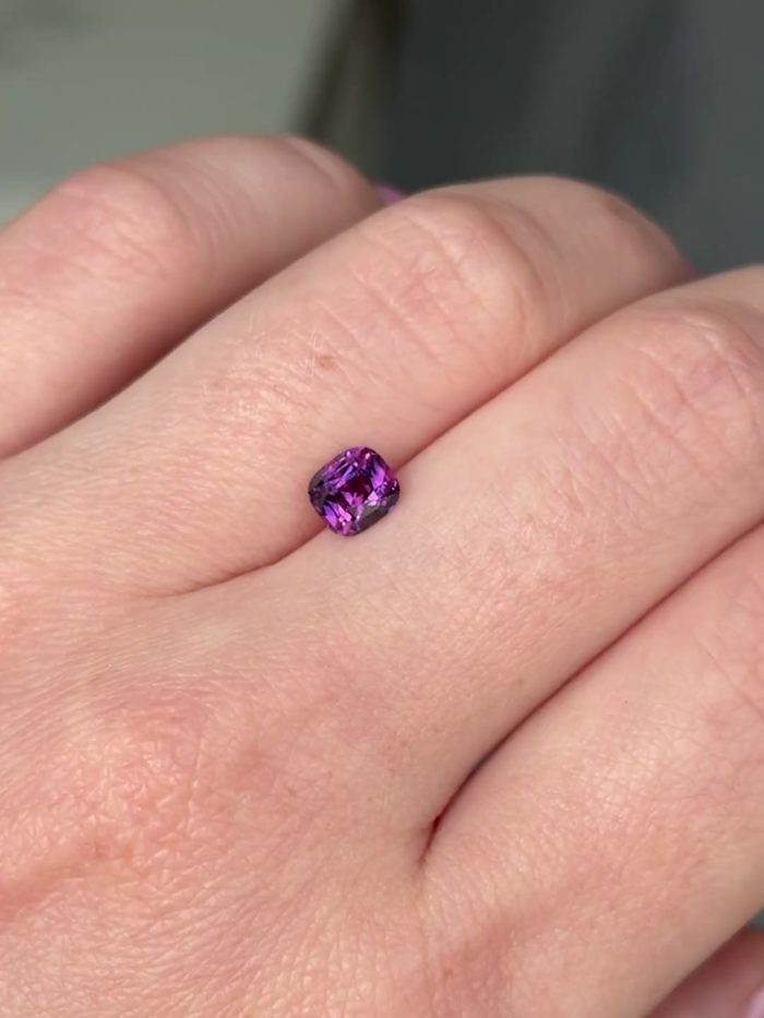 Очень насыщенный сапфир с сиренево-пурпурными и фиолетовыми тонами. Без облагораживания!