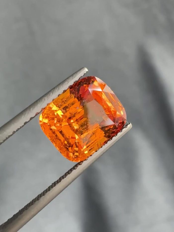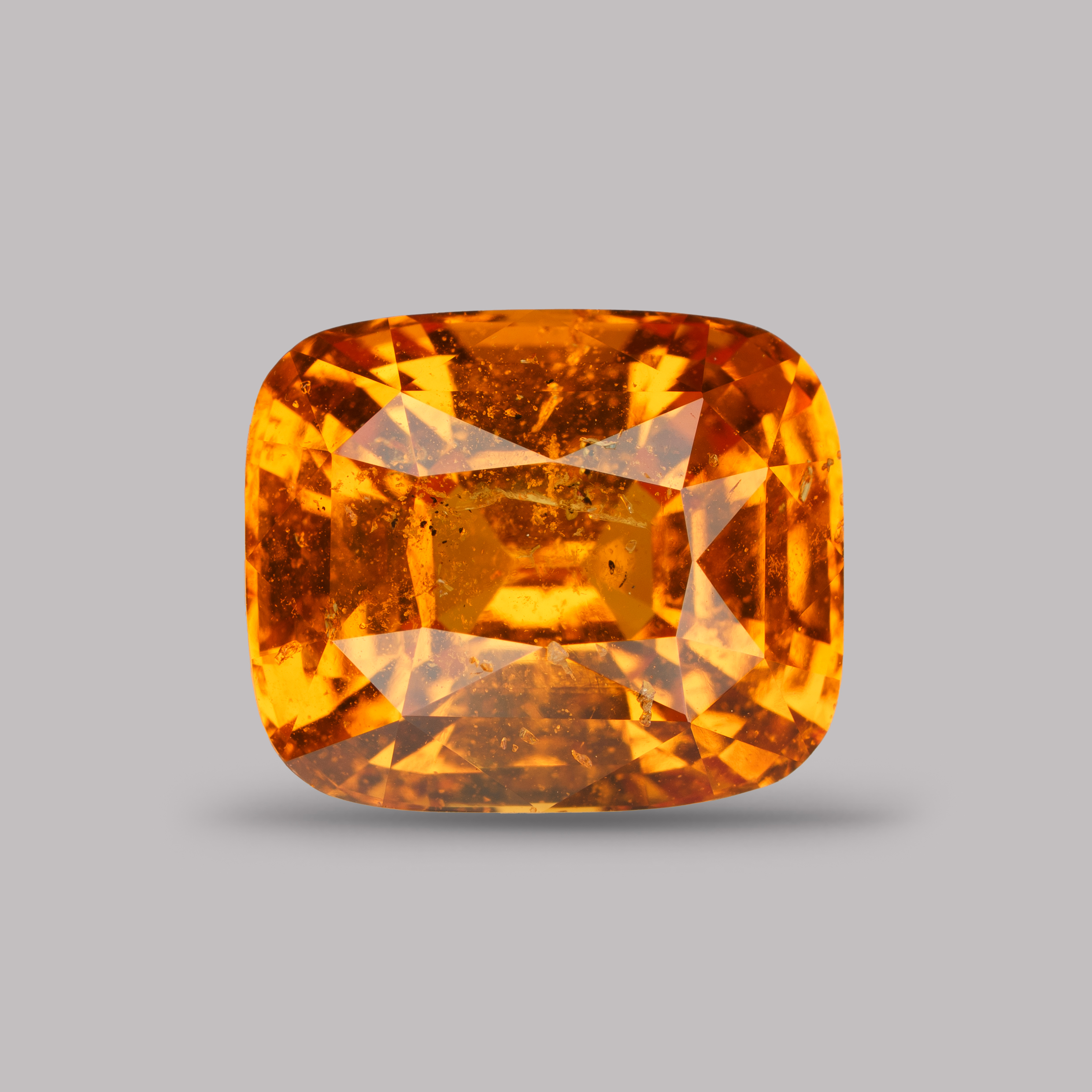 Ярко-оранжевый африканский гранат желанного цвета. Переполирован нами, не имеет сколов, включения, видимые на фото, в глаза не бросаются.