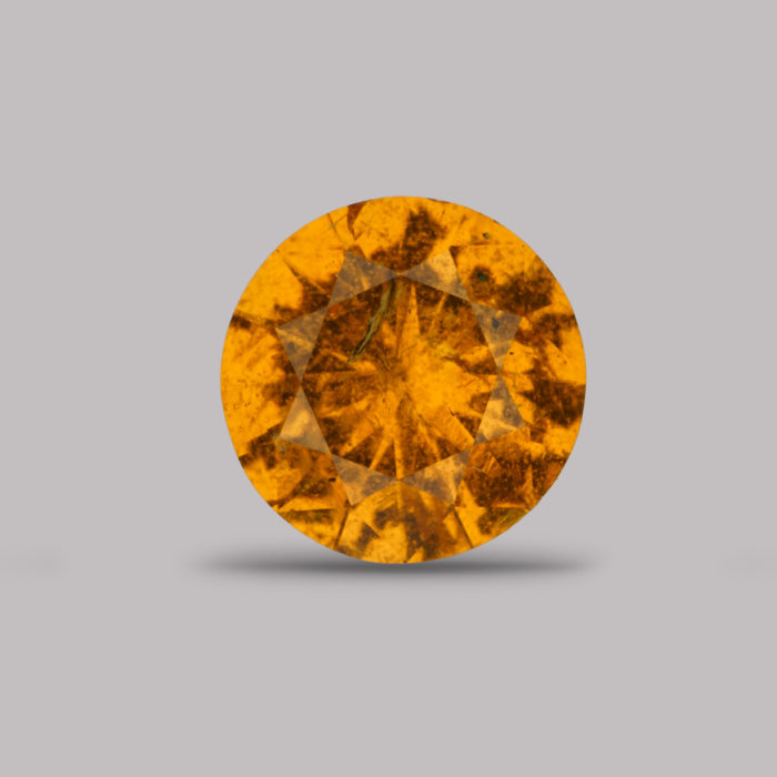 Спессартин живого цвета в бриллиантовой огранке. Имеет видимое включение.