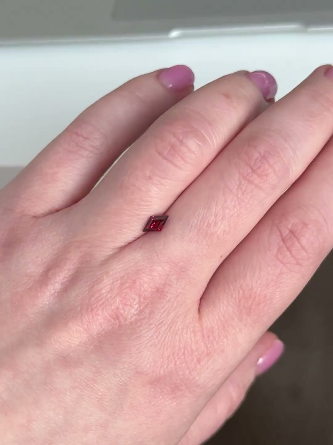 Тёмно-красная бирманская шпинель в огранке ромб. Камень визуально чистый