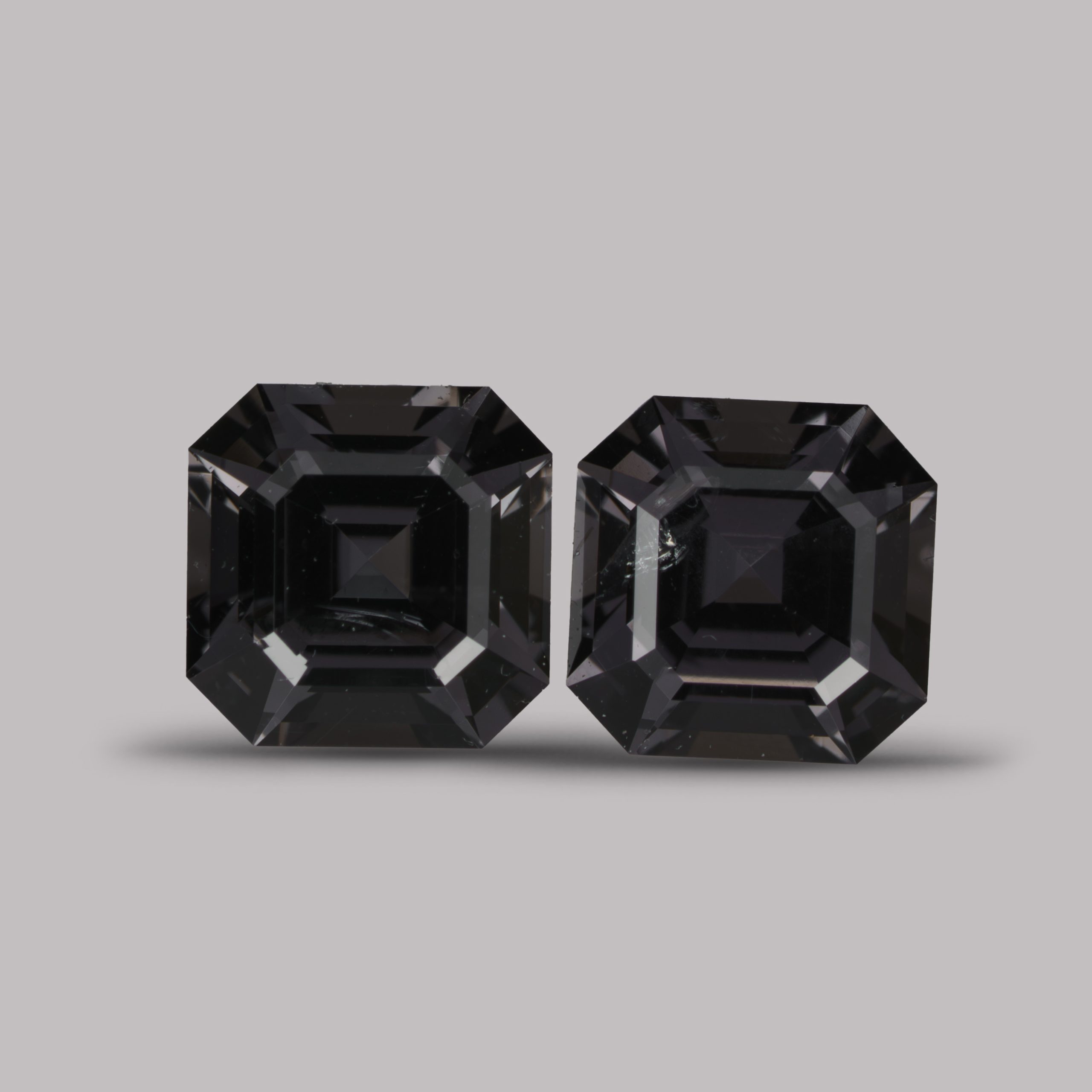 Пара небольших камней почти без постороннего оттенка в огранке ашер. Те самые грозовые, но тёмные, ближе к графитовому цвету. Визуально чистые, небольшие включения на фото глазом не видны.