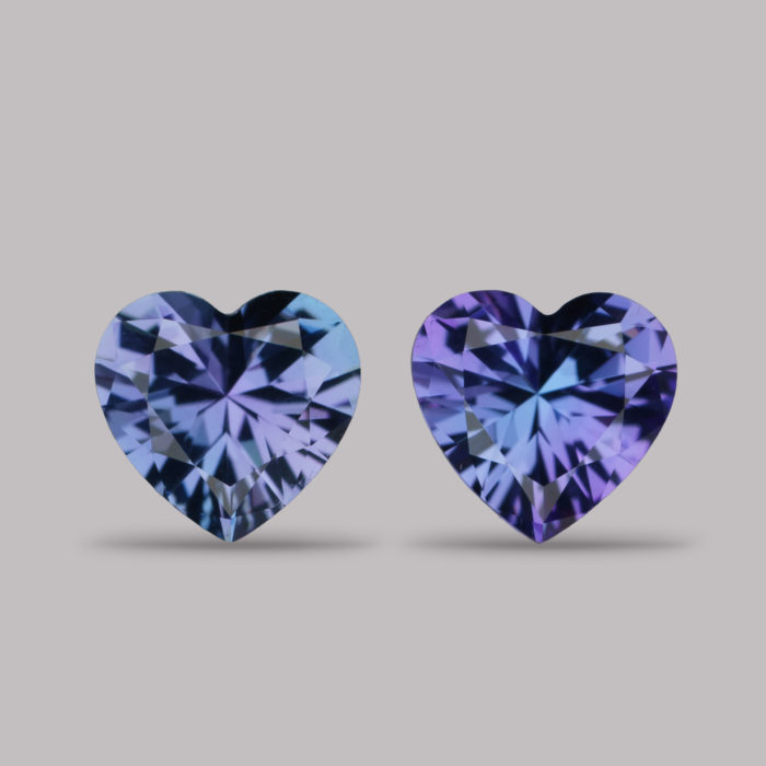 Пара сердец правильной формы с отличной огранкой – редкость для танзанитов и хороший вариант для пусет.