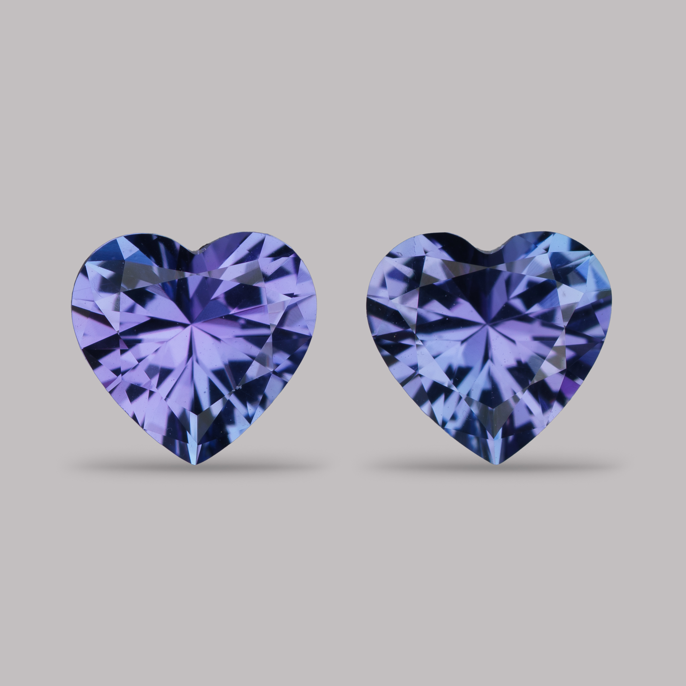 Пара сердец правильной формы с отличной огранкой – редкость для танзанитов и хороший вариант для пусет.