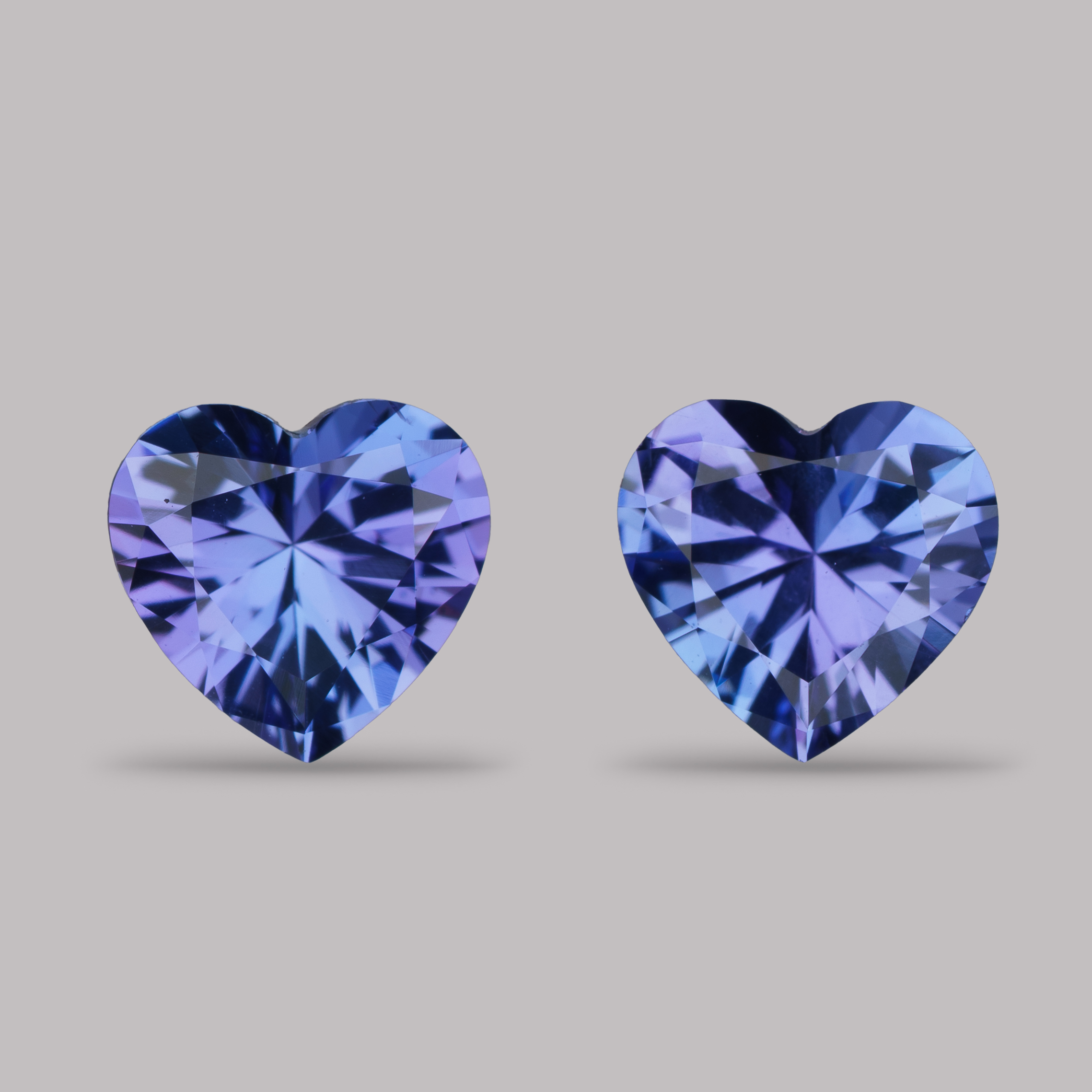 Пара сердец правильной формы с отличной огранкой – редкость для танзанитов и хороший вариант для пусет.