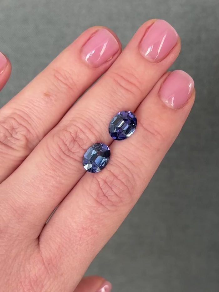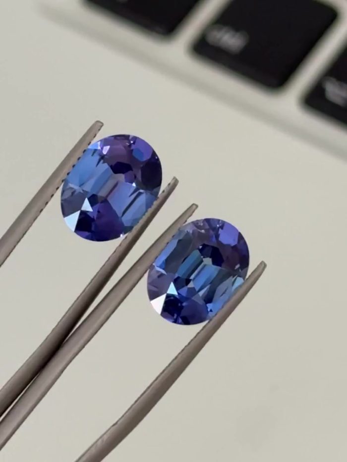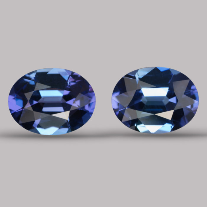 Пара танзанитов в европейской огранке. Один камень имеет небольшое включение ближе к краю.