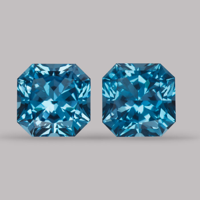 Пара зеленовато-голубых топазов в огранке радиант, идеальный размер для заметных пусет