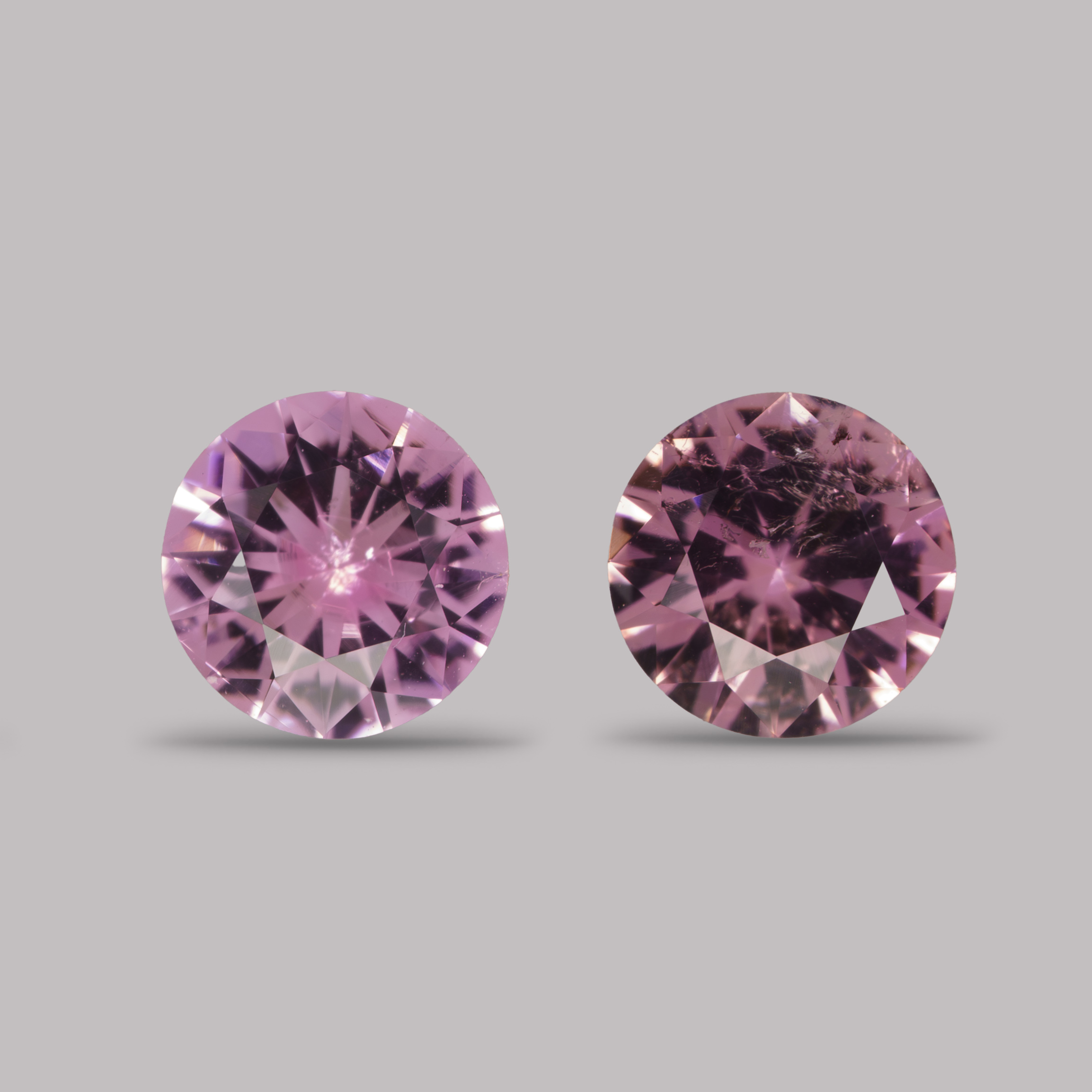 Пара светло-розовых турмалинов с лёгкой разницей в оттенках. Вживую ближе друг к другу, визуально чистые