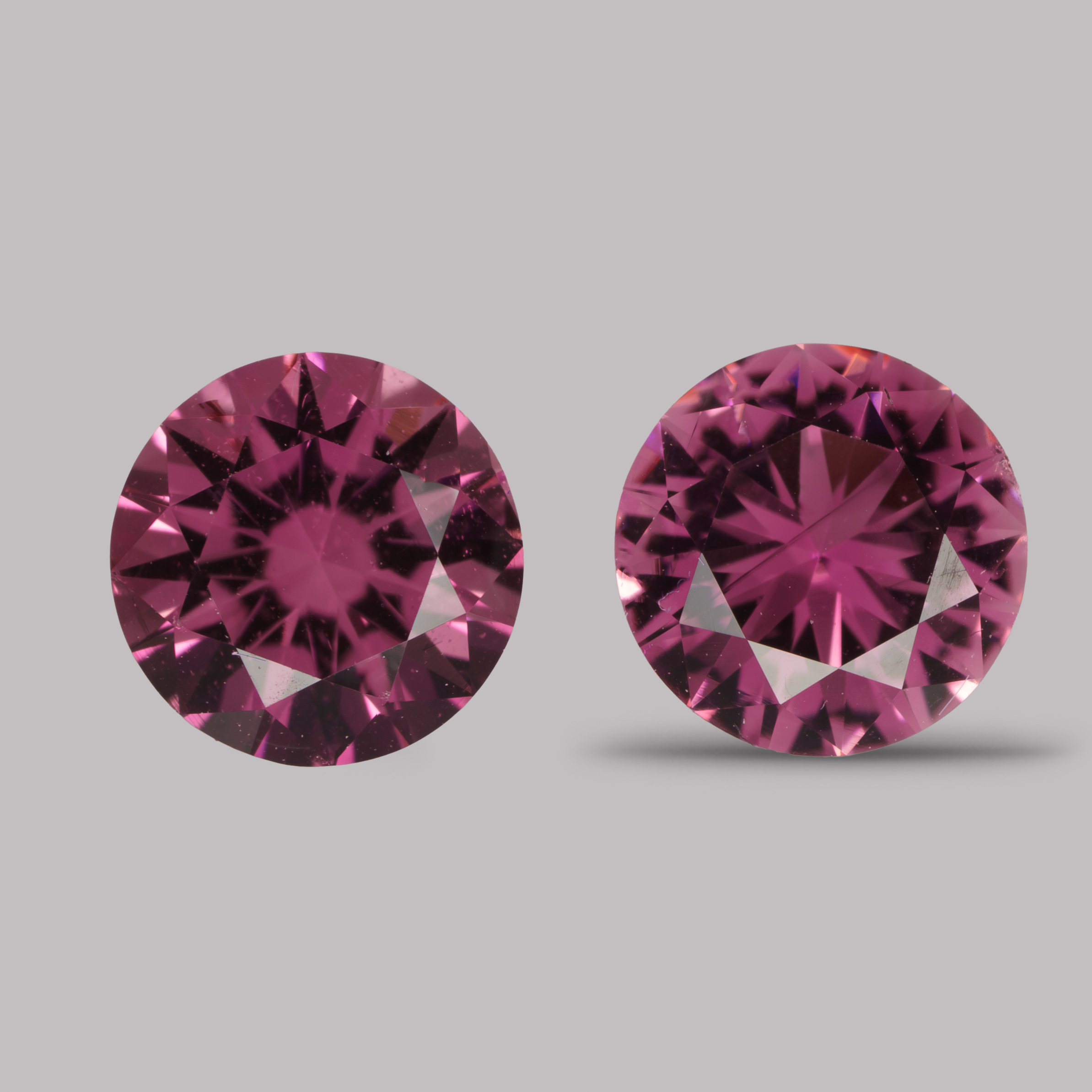 Пара ягодных забайкальских турмалинов в бриллиантовой огранке