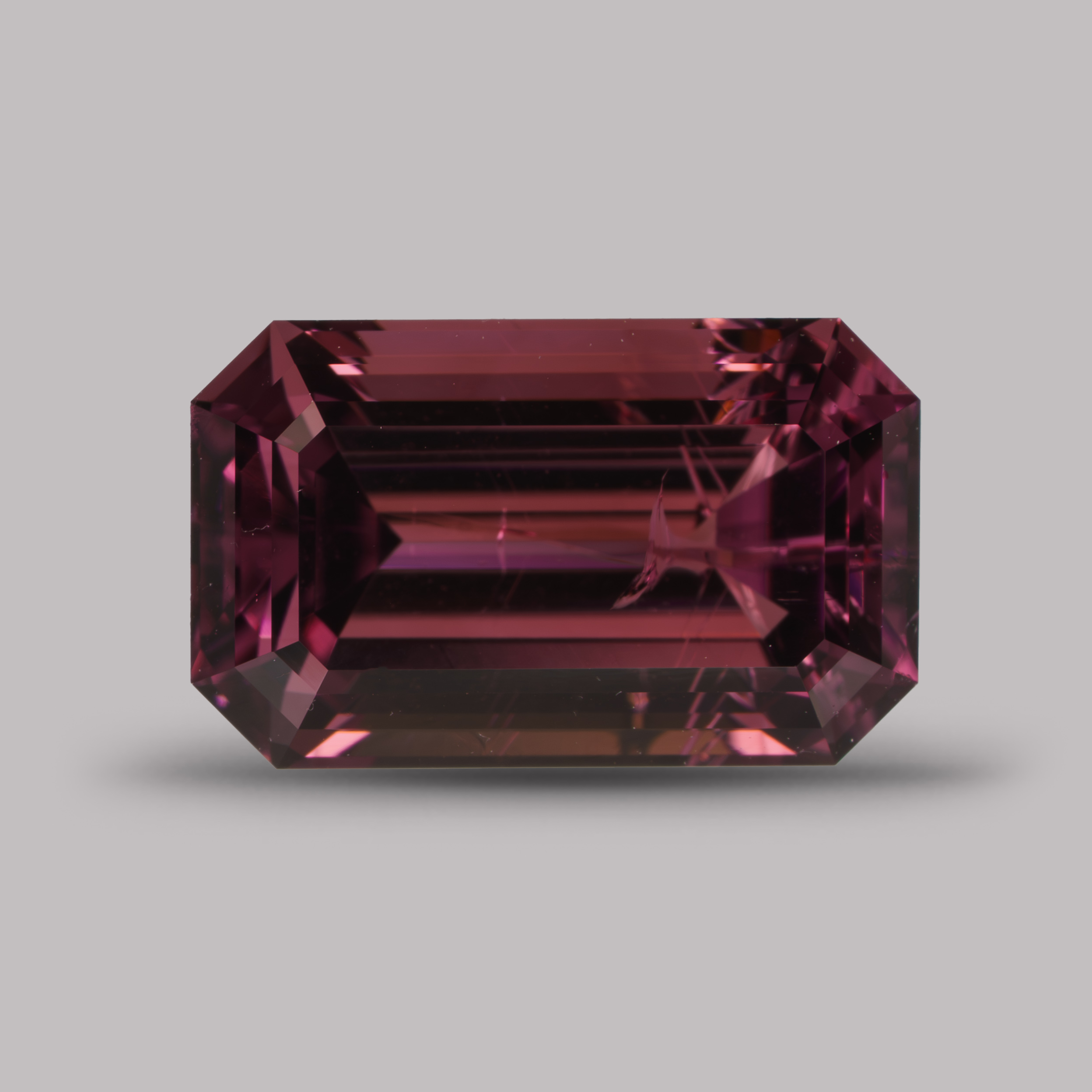 Ягодный забайкальский турмалин в изумрудной огранке. Есть видимые (но не бросающиеся в глаза вживую) включения, влияющие на цену
