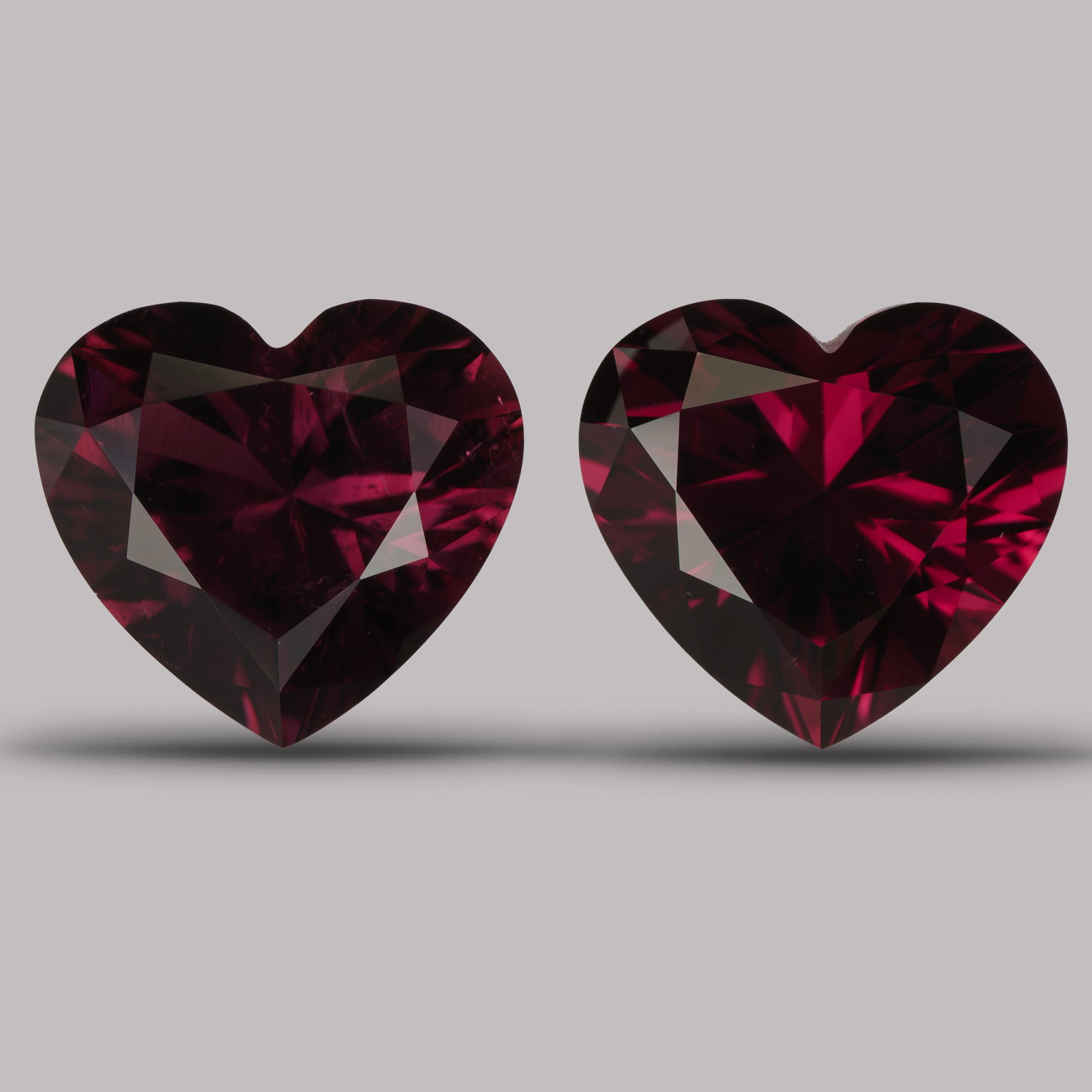 Редкий случай в нашей практике: пара забайкальских турмалинов с очень близким оттенком. Обычно огранка пар из такого сырья обречена на провал, но мы долго подбирали материал и были вознаграждены.