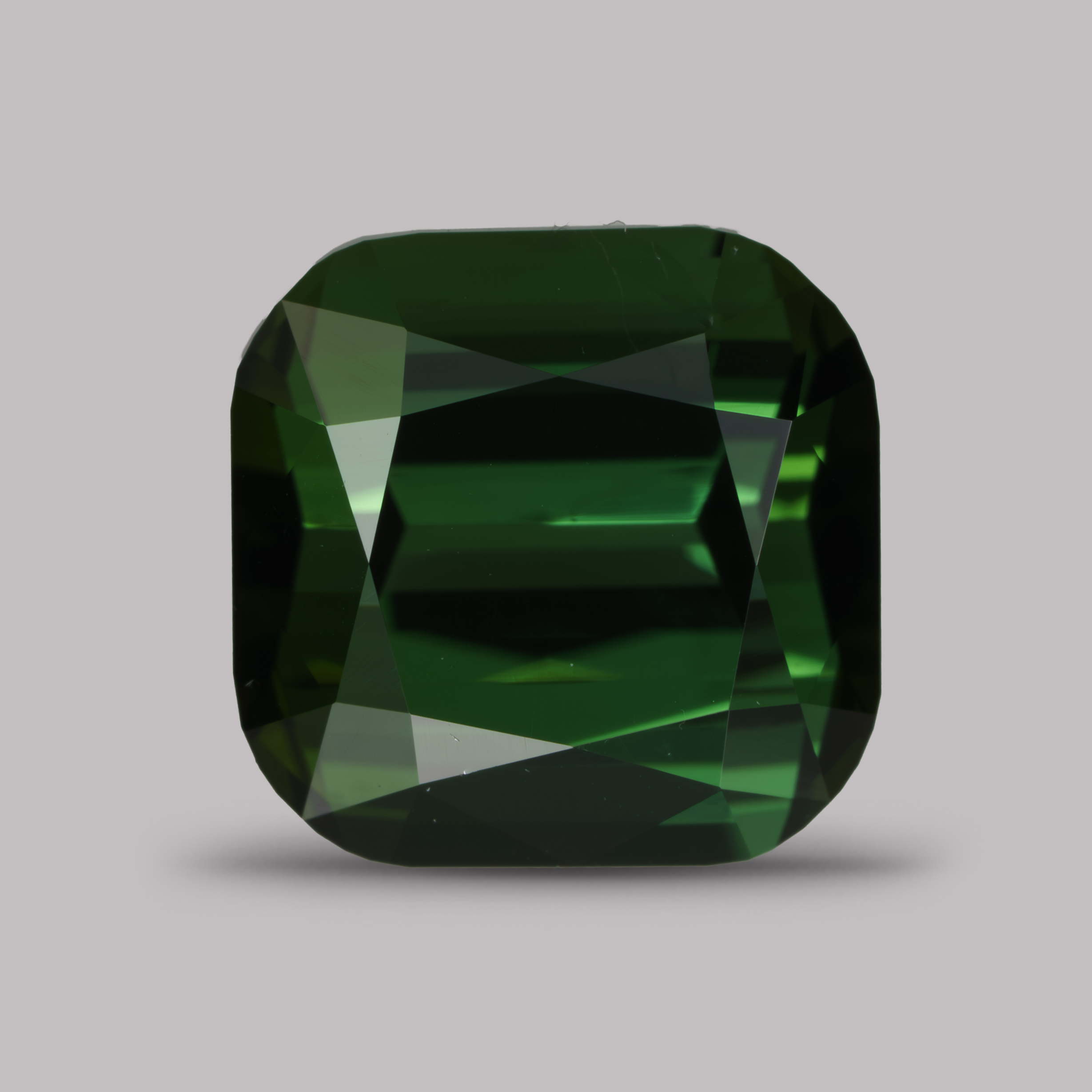 Тёмно-зелёный турмалин в традиционной огранке после нашей переполировки.