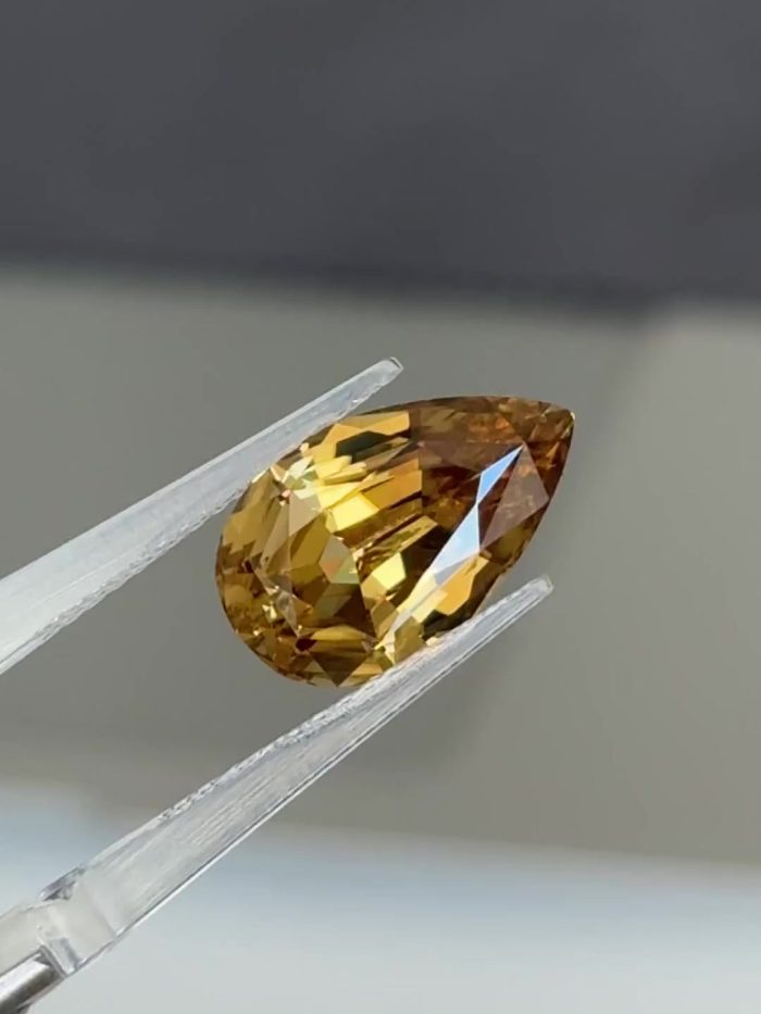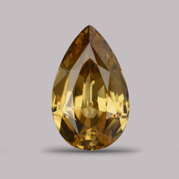 Крупный охристо-желтый циркон в традиционной ступенчатой огранке.
