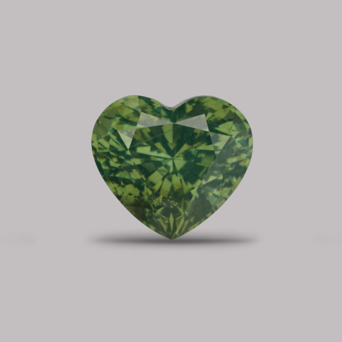 Сердце из редкого зелёного циркона с лёгкой голубоватой дымкой